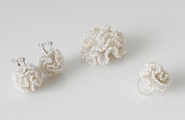 pearl silverlace (earring, brooch, ring)